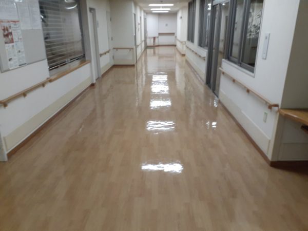 作業後しっかりと光沢がアップしてとても清潔な床になりました。