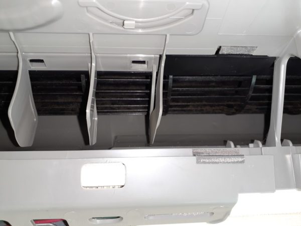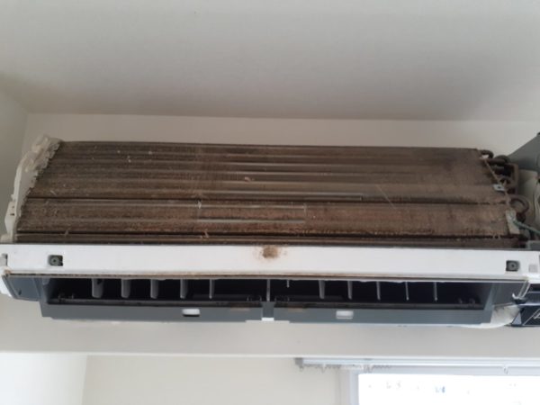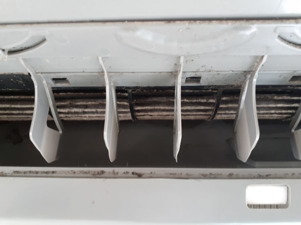 熱交換器フィンもファンもしっかり汚れていました。