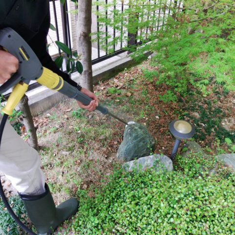 弊社は100℃近いお湯を吹きかけて行う「温水除草」を採用しております。